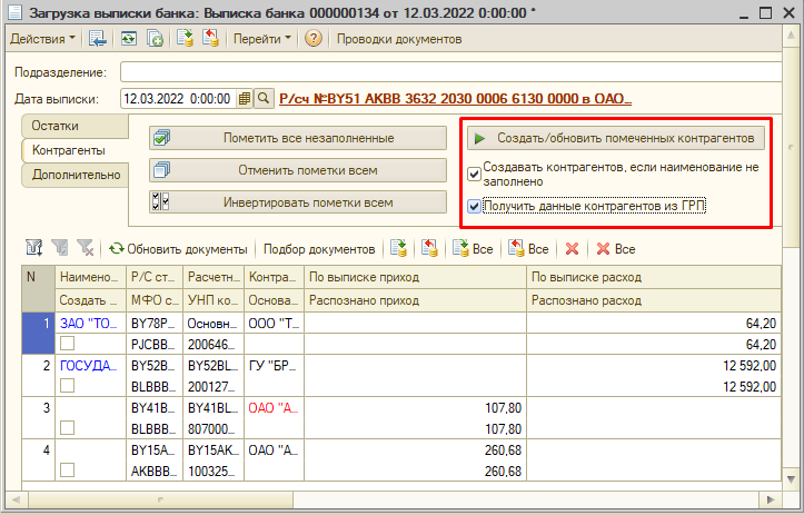 Дано: в выписке появился новый контрагент или поменялись реквизиты у текущего.