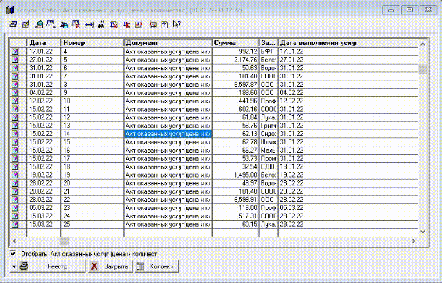 3. Отобрать по фильтрам реестр документов.
