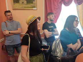 Нам понравилось с коллегами быть активными участниками такого экскурсионного перформанса. Мы с удовольствием слушали рассказы гидов, рассматривали картины, старинные бальные платья, рыцарские доспехи.