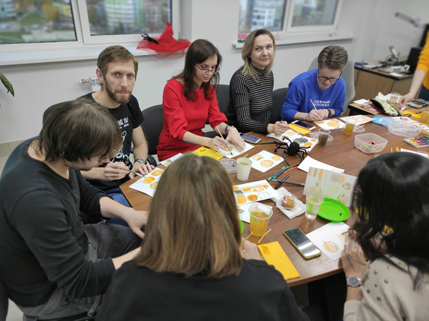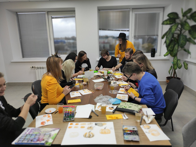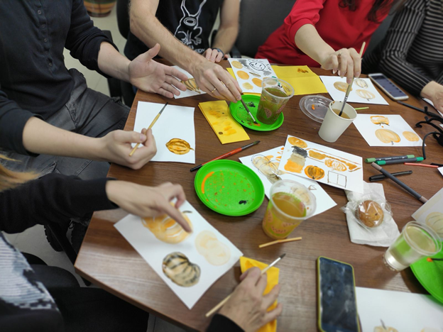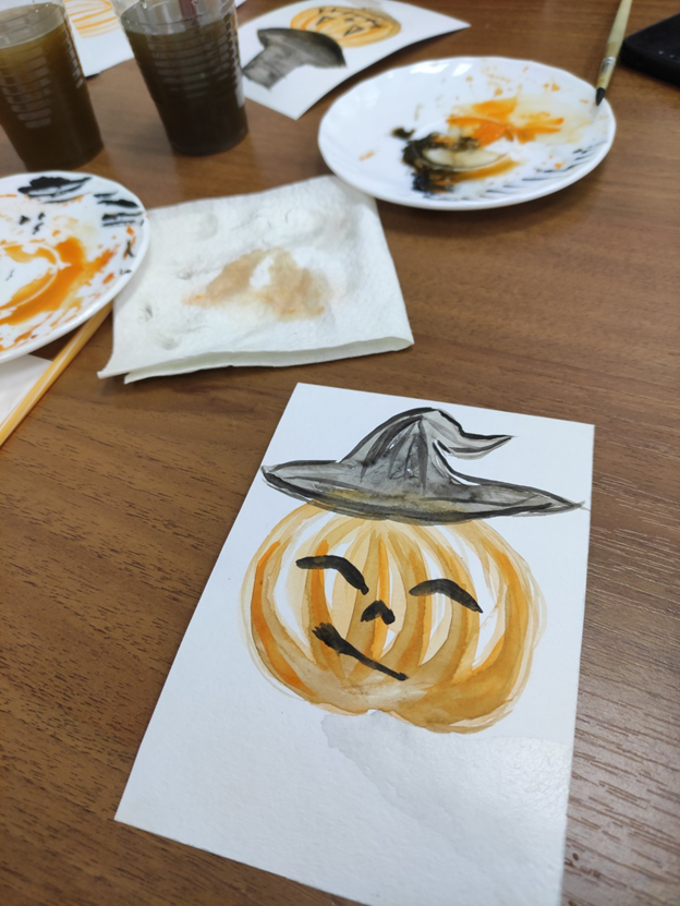 Все рисовали оранжевую тыкву, а по итогу не было ни одной одинаковой работы. Каждая открытка получилась уникальной.