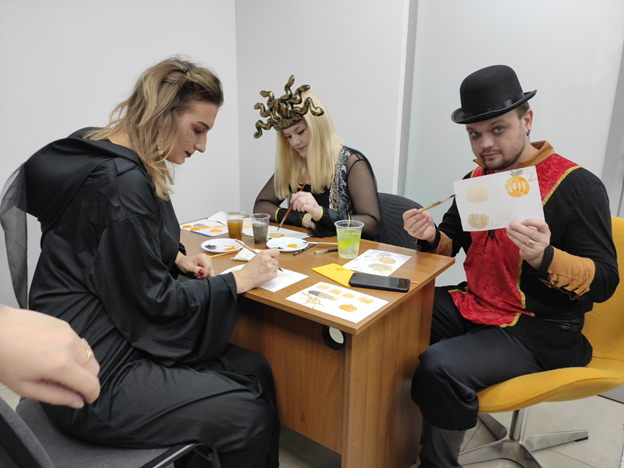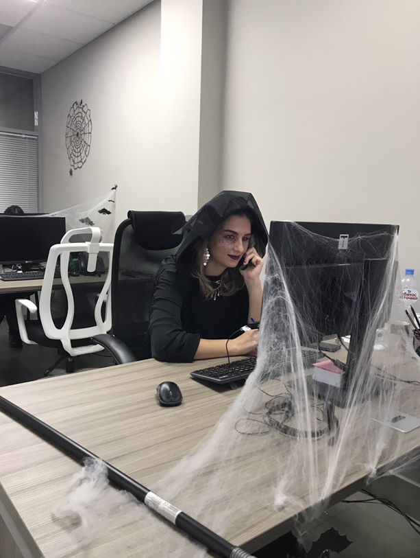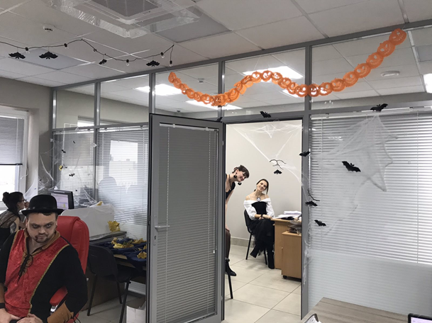 Отпускать на самотек подготовку к празднику мы не любим. В разгаре дня объявили конкурс на лучший хэллоуин-образ и лучший хэллоуин-декор.