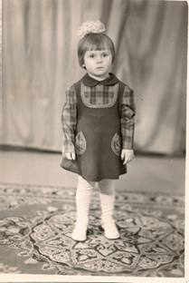 Марина Валерьевна Неверовская (инженер-программист): " Помню, что примерно в этом возрасте, как на фото, попала к бабушке на работу на ферму. Очень мне понравилось с ней быть тогда дояркой. У них были такие красивые белые косынки и фартуки. Мечтала быть как бабушка!"