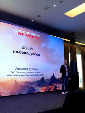 Интеллектуальные системы участвуют в конференции каждый год, а в этом году мы еще и спикеры, и победители конкурса. Александр Владимирович Губанов, заместитель директора по разработке, представил Инфостарту свой доклад «SCRUM по-белорусски». Ксения Юрьевна Крупень – бизнес-аналитик - взяла главный приз в фото-конкурсе.
