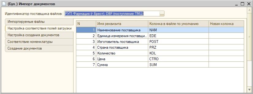 4. Загрузка данных при импорте документов прихода остатков от РУП «Белфармация». Обработка «Импорт документов» предназначена для импорта документов из внешних источников. Виды документов и особенности их загрузки определяются в зависимости от идентификатора поставщика файлов. В результате работы обработки создаются заполненные документы. Это ускоряет ввод накладных от поставщиков, уменьшает количество ручного труда.