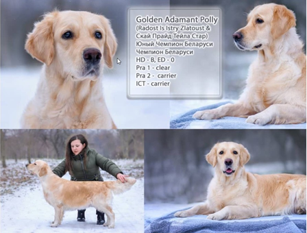 — Полли — наш старший питомец, спокойный и добрый пес, очень любит играть с детьми и ей всего 3 года. Несмотря на такой молодой возраст, у Полли есть титулы — «Юный чемпион Беларуси» и «Чемпион Беларуси».
