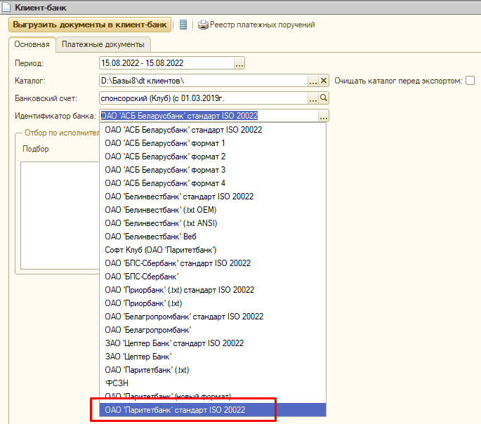 Добавлена выгрузка платежных поручений в Паритетбанк в обновленном формате ISO 20022.