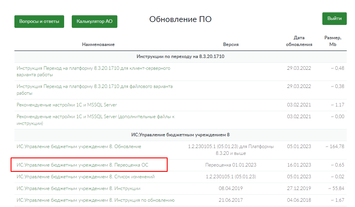 3. В разделе «Обновление программ» можно скачать инструкцию и коэффициенты переоценки. В инструкции подробно описаны действия по проведению переоценки ОС как за текущий год, так и за пропущенный период.