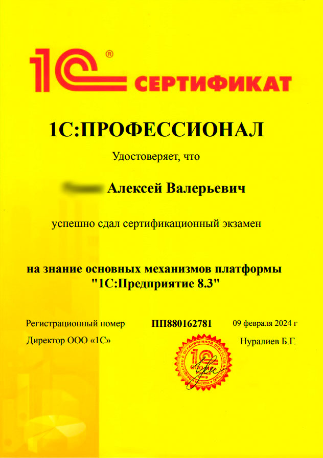 Выражаем огромную благодарность Алексею за оперативное внедрение 1С розницы для нашей сети печатных центров "Формат". Разобрался со всеми сложностями настройки ПО для нас, интересно и понятно организовал обучение.