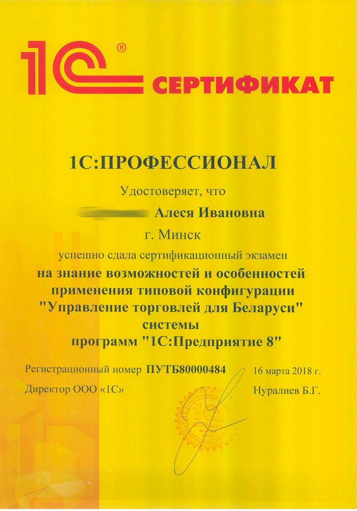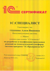 Выражаю благодарность Сергеенко Алесе Ивановне за оперативное решение вопросов, связанных с эксплуатацией 1с8, выполнение различных доработок для НЦПИ. Профессиональный и компетентный подход к возникающим проблемам, нахождение оптимальных путей их решения одно из многих положительных качеств Алеси Ивановны, которое можно выделить!