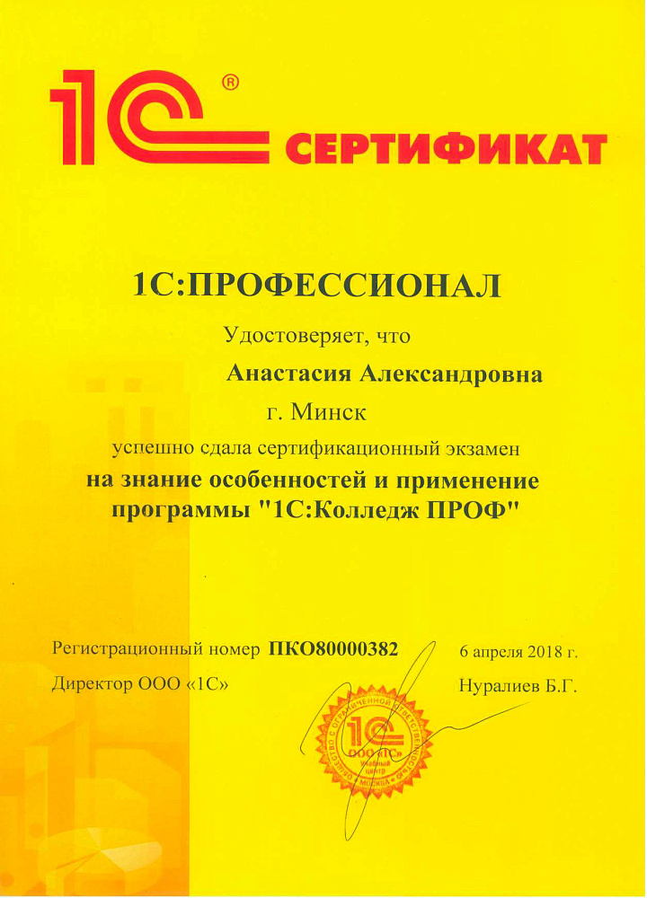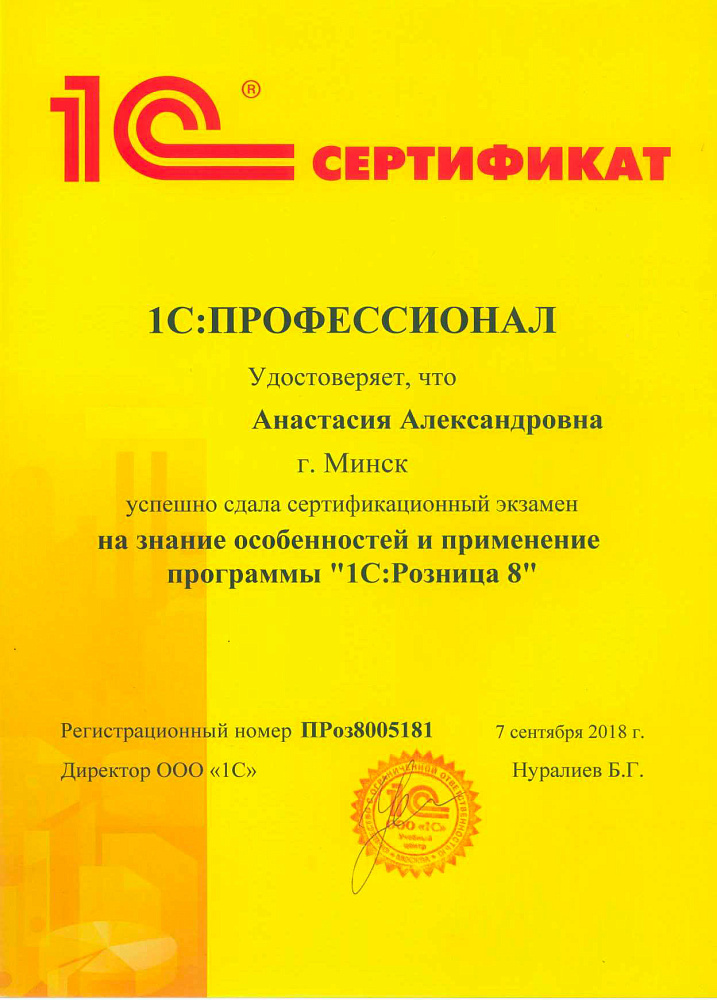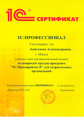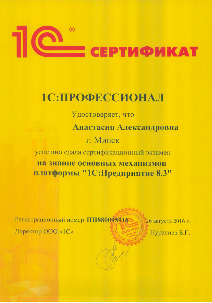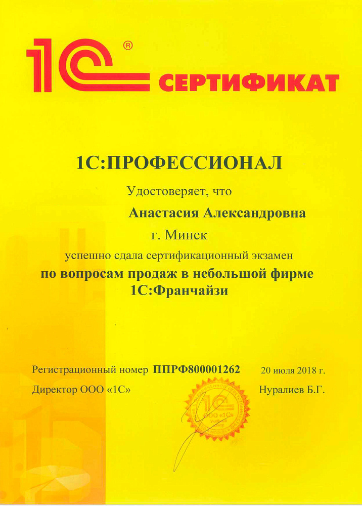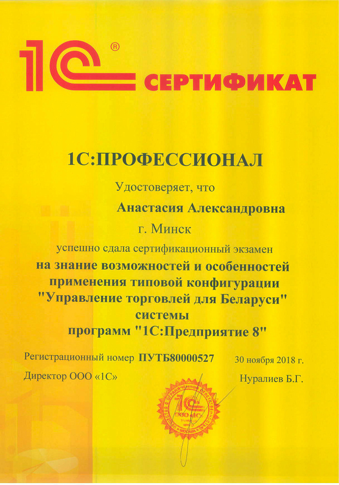 Хочу поблагодарить Анастасию за ее работу. Большая умничка, найдет выход из любой даже самой сложной ситуации. Всегда помогает!!!! Спасибо огромное 1С за такого грамотного сотрудника!!!!
