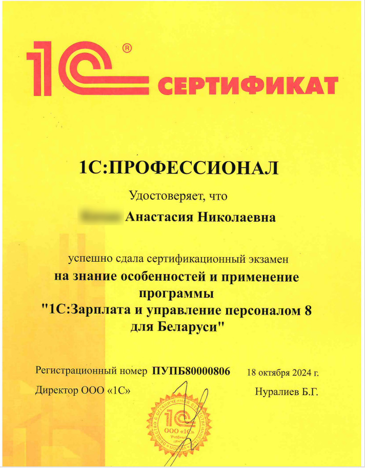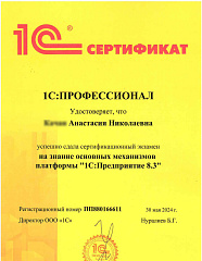 Огромное спасибо за внедрение программного обеспечения. Внимательная, легкая в общении. Информацию, которую получали от Анастасии, легко применяли в программе. Ответы на вопросы получали в любое время, без задержки. Поэтому, успешно сдали первый баланс за 1 квартал 2024 года в программе 1С. Спасибо большое! Надеемся на дальнейшее сотрудничество!)