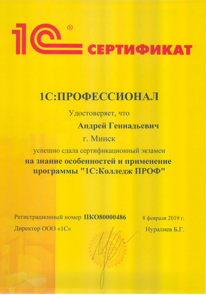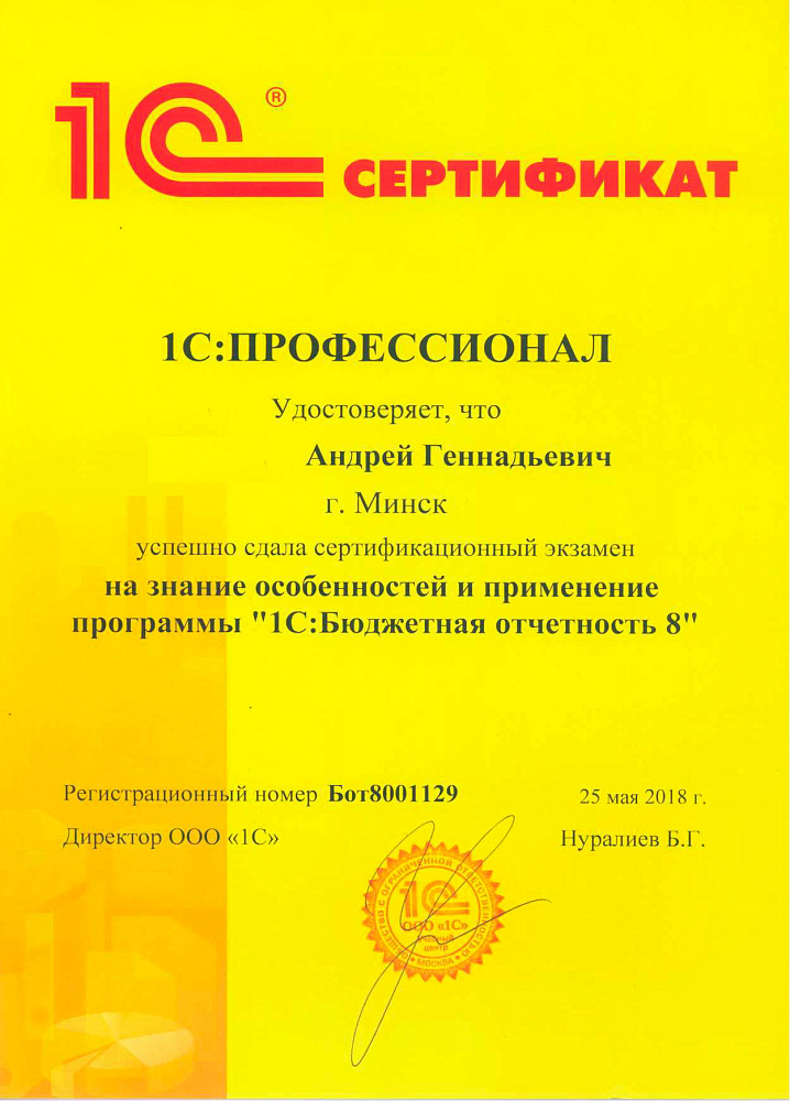 Андрей Геннадьевич профессионал своего дела, отличный специалист с большим опытом работы. При выполнении своих профессиональных обязанностей всегда аккуратен и компетентен. С заинтересованностью и энтузиазмом помогает каждый раз при обращении. Внимателен, сдержан в любых ситуациях . Никогда не подведет!!! От всего отдела бухгалтерского учета выражаем огромную благодарность!!!