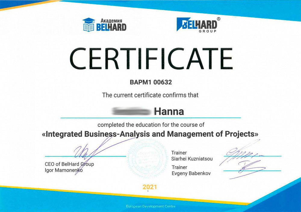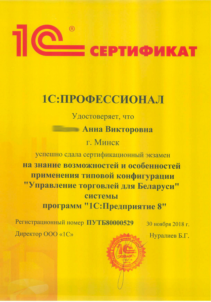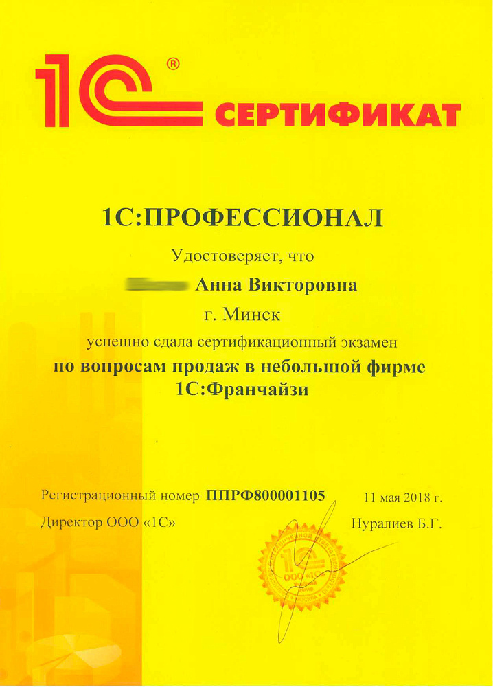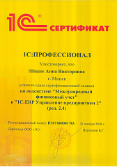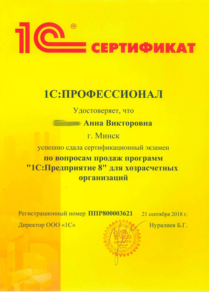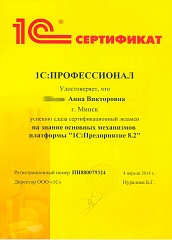 Хочу выразить свою благодарность Анне за её высокий профессионализм, который заключается в умении понять, терпеливо выслушать и помочь. Еще хочется поблагодарить Долидович Олесю за помощь в работе, она нас внедряла и во многом благодаря ей у нас не опустились руки и мы перешли на 1С. Спасибо им большое за помощь в работе и приятное общение.