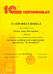 Большое спасибо Анне Викторовне за помощь в работе с программами бухгалтерия 7 и 1с8. Спасибо за отзывчивость, за то, что всегда вникаете в наши проблемы и достигаете вместе с нами желаемого результата.