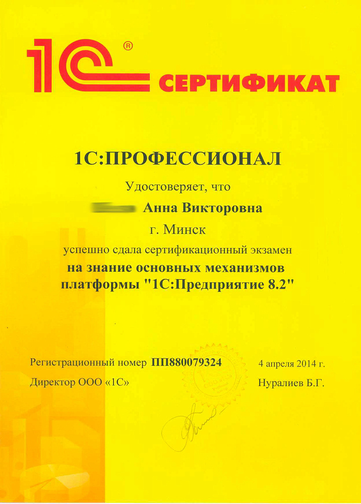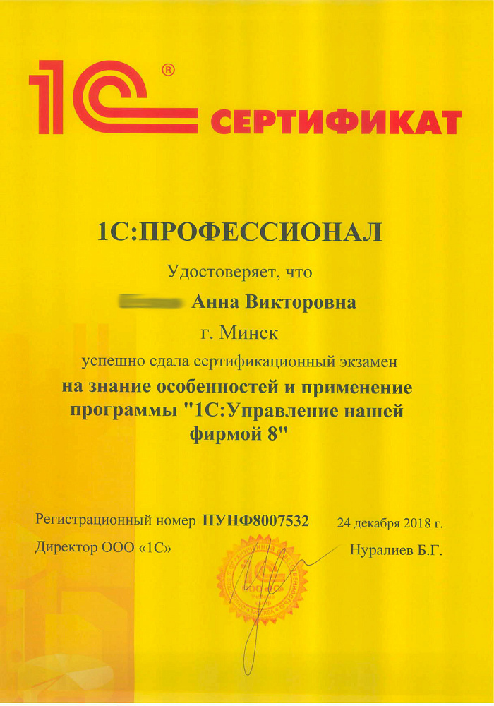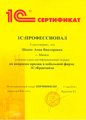 Хочется выразить свою благодарность Анне за помощь при освоении программы 1С. Она зарекомендовала себя как квалифицированный специалист, тактичный человек. Всегда поможет выйти из возникшей затруднительной ситуации. Когда дозваниваюсь и слышу голос Анны, знаю, что решим все проблемы оперативно и квалифицированно. Спасибо большое.