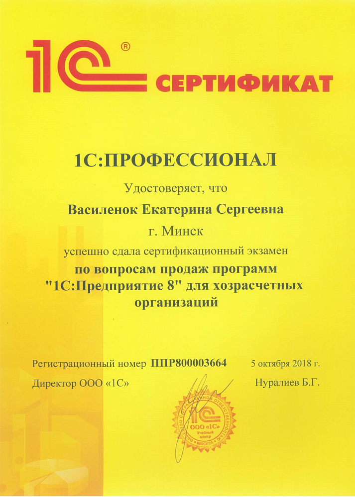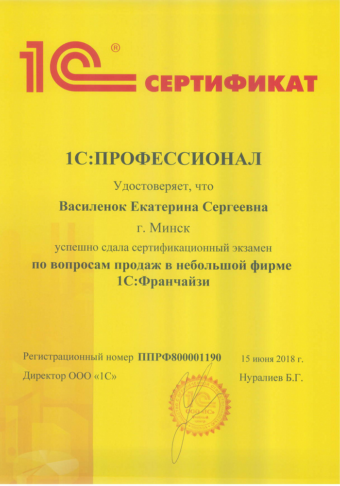 Благодарны за своевременную помощь по эксплуатации ПО, очень нравится специалист Екатерина Сергеевна. Спасибо.