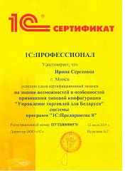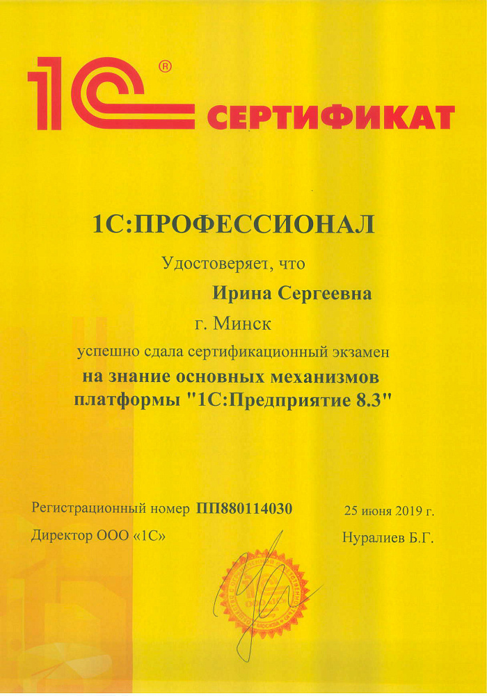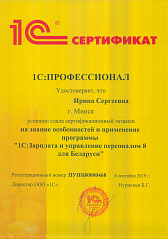 Огромное спасибо Ирине Сергеевне за своевременную и качественную помощь по программе 1С. Быстро решает все поставленные задачи!