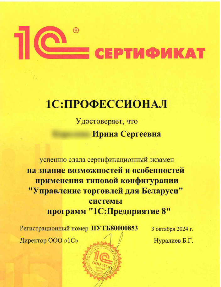 Выражаю огромную благодарность Ирине за ее помощь по внедрению программы. Ирина отзывчивый, внимательный, ответственный, чуткий человек. С полной самоотдачей успешно решает сложные задачи. Оказывает своевременную, компетентную помощь. С Ириной комфортно и легко работать.