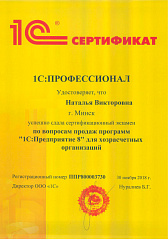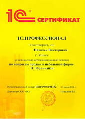 Выражаю благодарность Наталье Викторовне в решении вопросов, касающихся программного обеспечения. Очень грамотный, вежливый сотрудник! Спасибо за помощь!