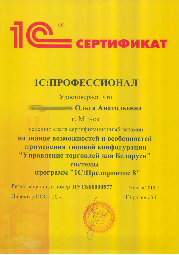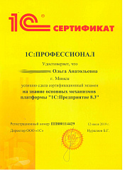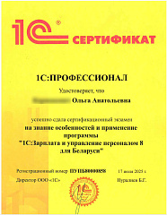Замечательный, опытный, предприимчивый специалист!!! За полтора года работы в другой организации, где Ольга Анатольевна была специалистом по внедрению программы, только положительные эмоции. Специалист неравнодушный к своему делу и к вопросам клиента. Это и повлияло на выбор компании для внедрения программы 1С уже будучи в другой организации.