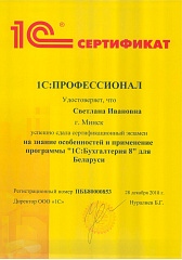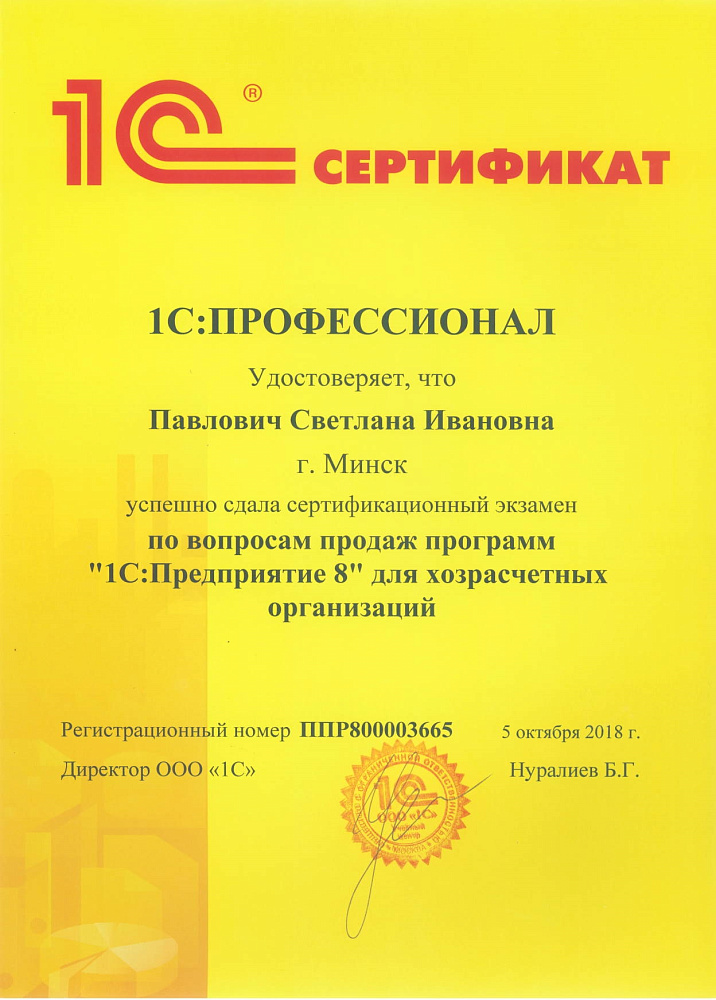 Хочу отметить Вашего сотрудника Светлану Ивановну Павлович, как хорошего, доброго и отзывчивого работника. Несмотря на занятость и ограничение во времени, помогает выйти из разных сложившихся ситуаций, в том числе по доработке 1 С Бухгалтерия. Всегда умеет довести начатое дело до конца и с хорошим результатом. Такого сотрудника можно не только похвалить, но и поощрить.