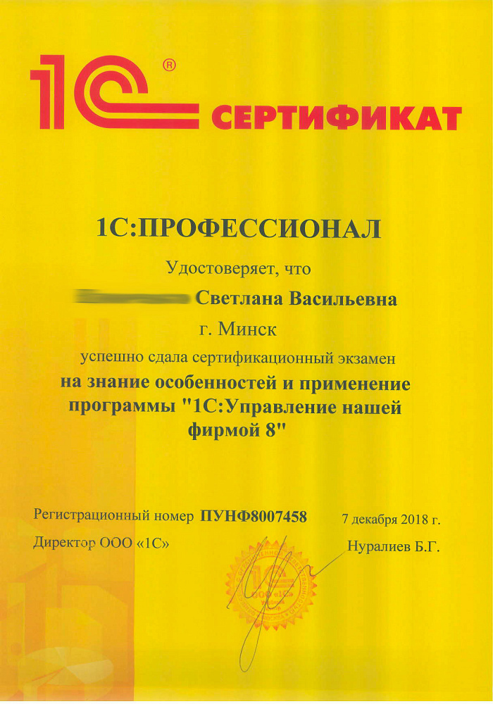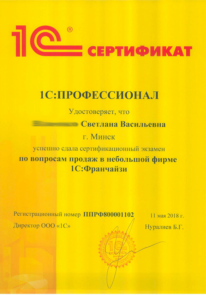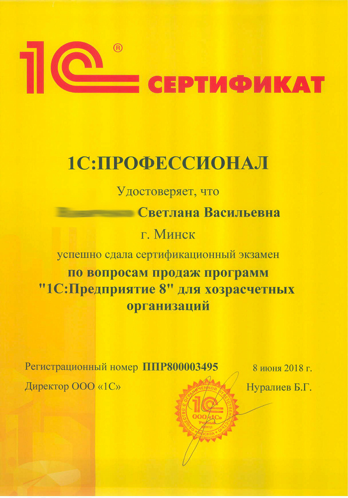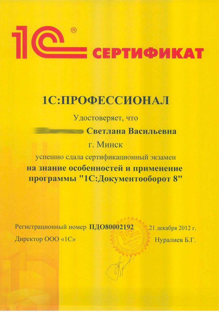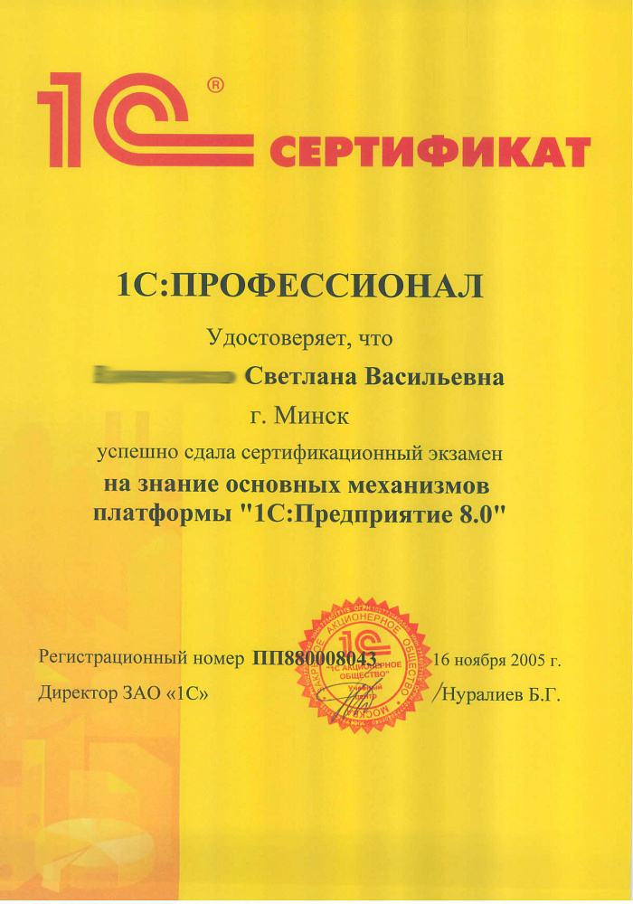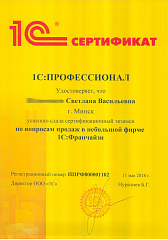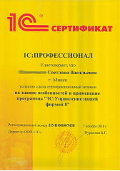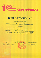 Благодарим Вас за организацию работы "линии консультаций", своевременные ответы на все наши запросы, помощь в установке платформы 1С.