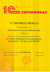 Выражаю благодарность Светлане Васильевне за оказанную помощь по работе с программой в процессе реорганизации нашего учреждения, а также использования дополнительных услуг в системе ЕРИП. Отдельное спасибо программистам за быструю и качественную работу.