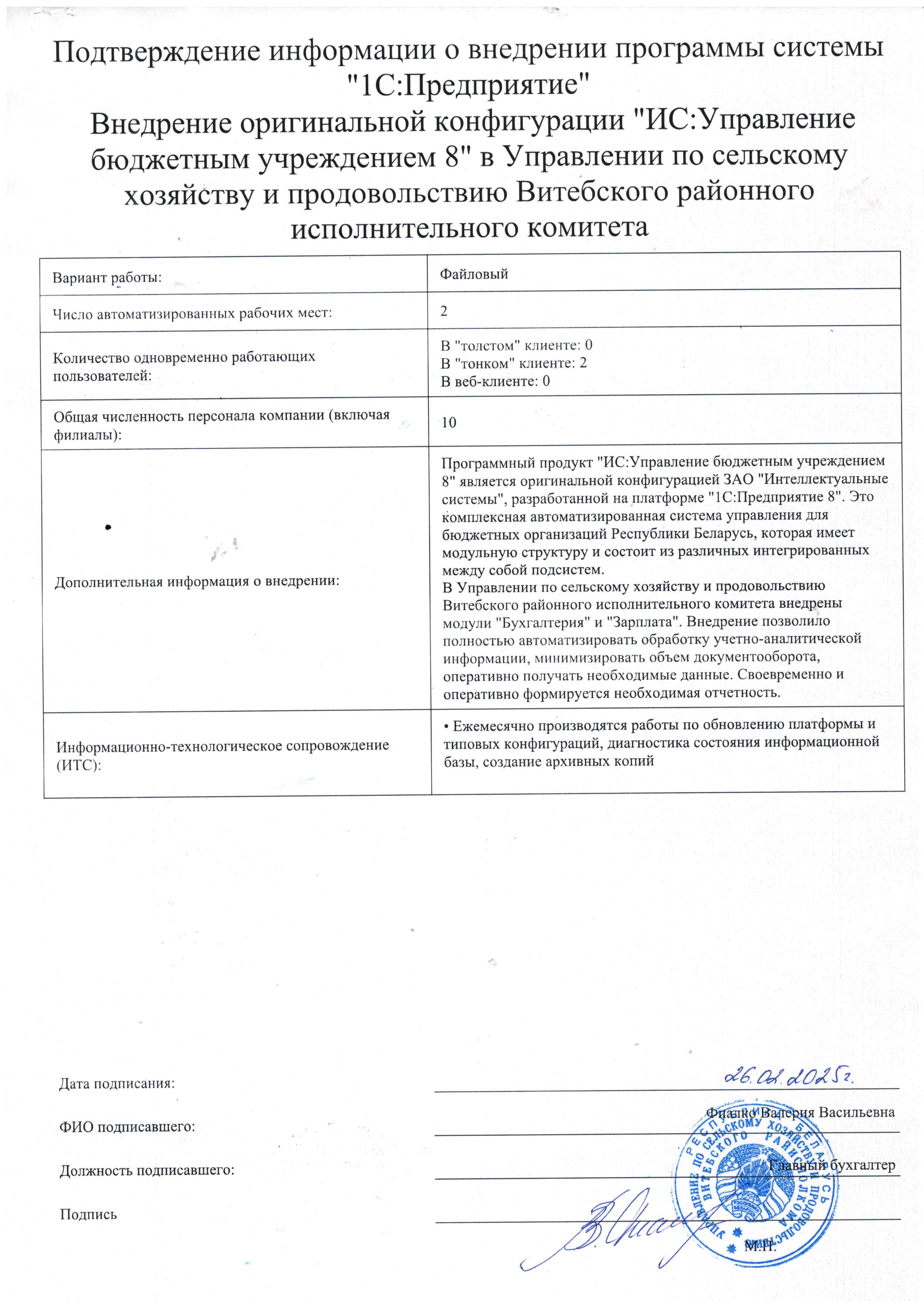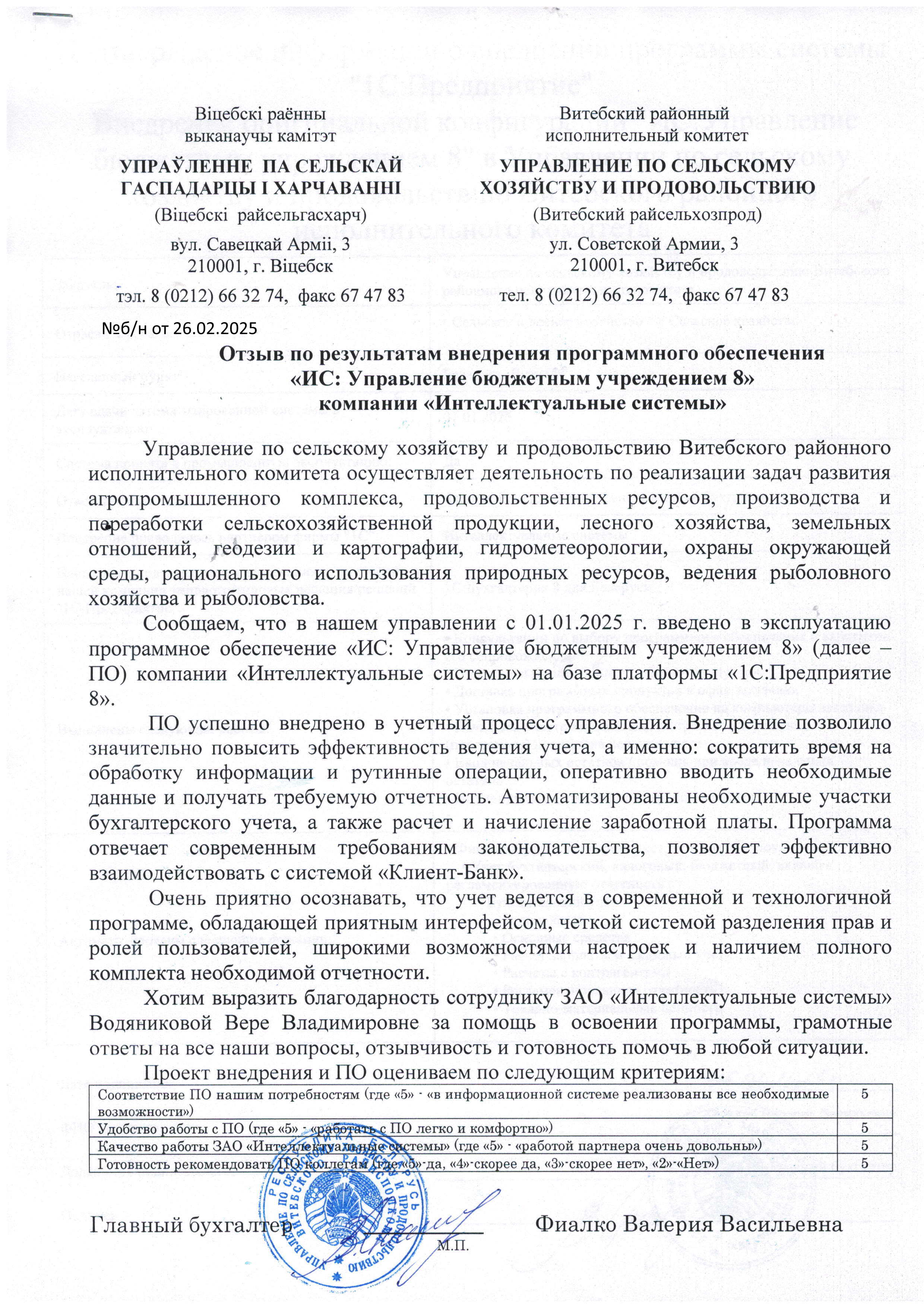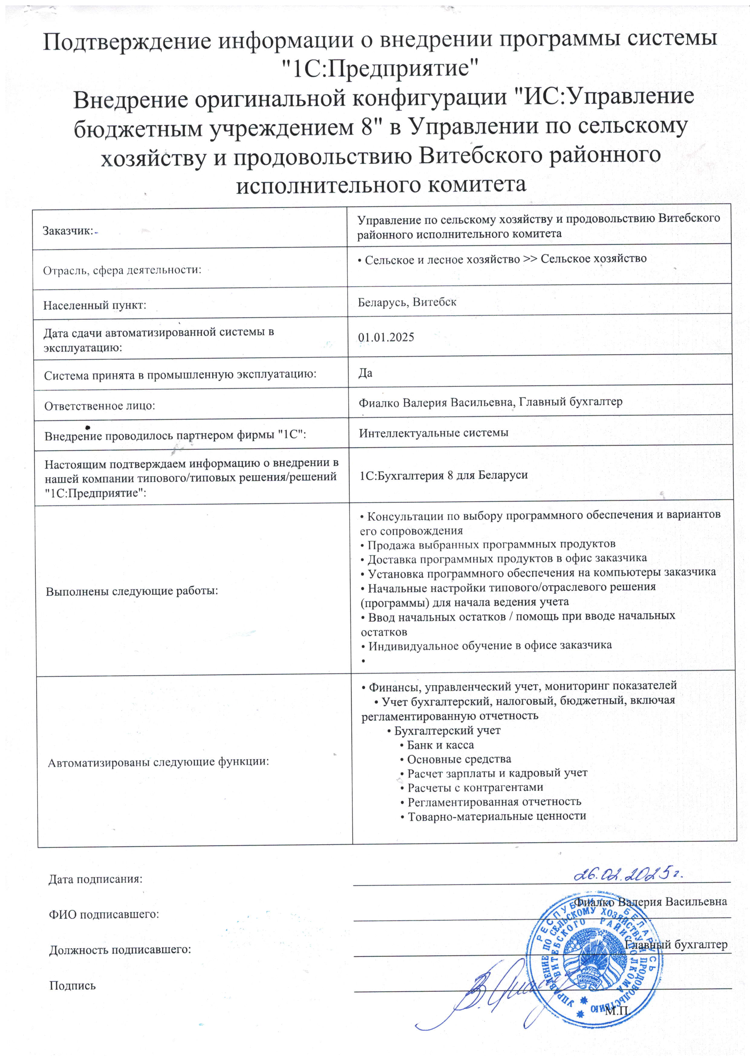 Внедрение 1С в Управлении по сельскому хозяйству и продовольствию Витебского районного исполнительного комитета