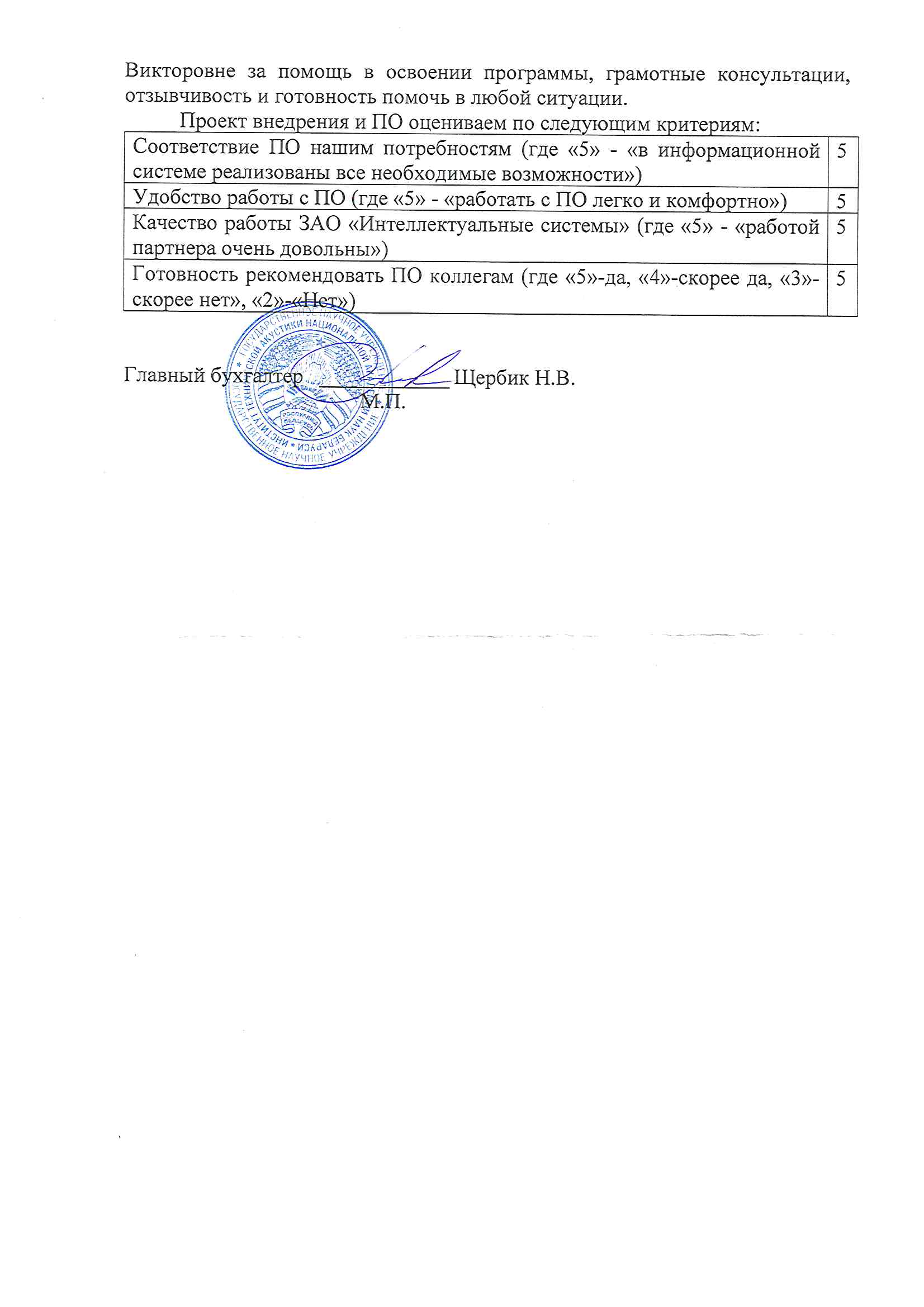 Выражаем благодарность сотруднику ЗАО «Интеллектуальные системы» специалисту по сопровождению ПО Дронченко Инне Васильевне за помощь в освоении программы, грамотные консультации, отзывчивость и готовность помочь в любой ситуации.