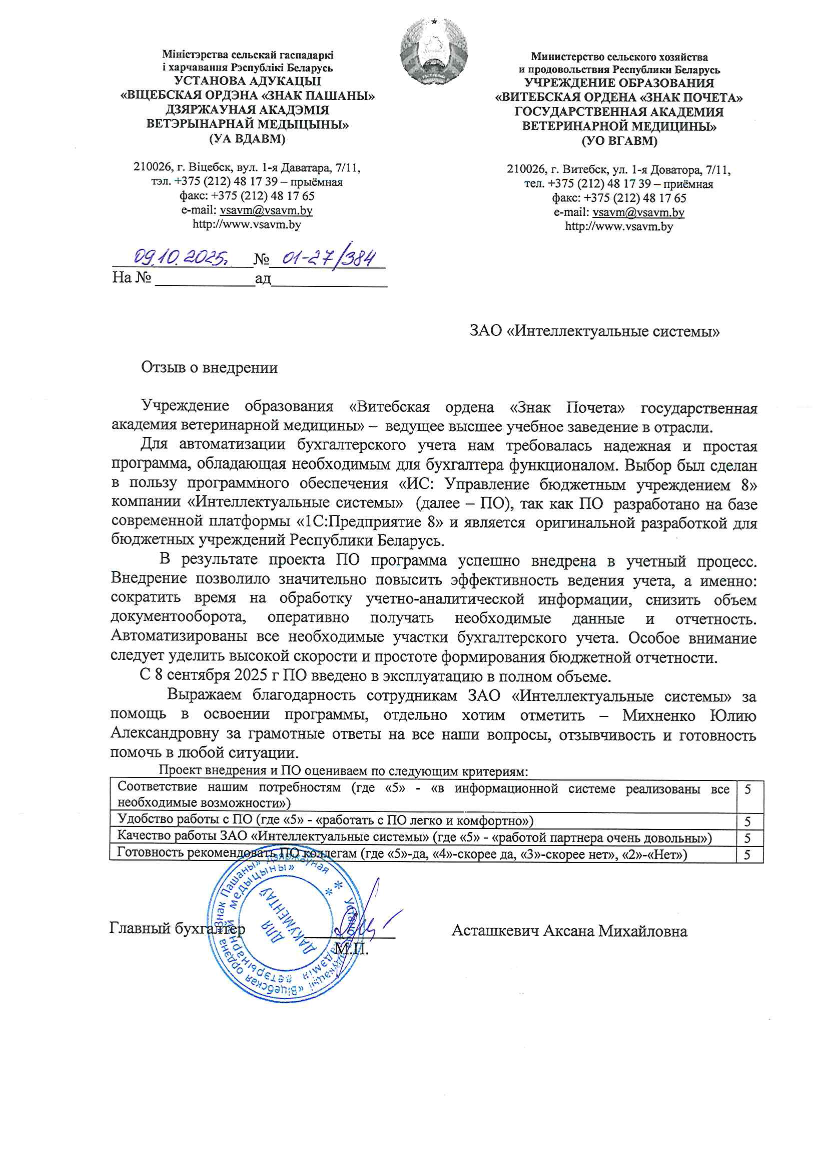 Внедрение 1С в Учреждении образования "Витебская ордена "Знак Почета" государственная академия ветеринарной медицины"