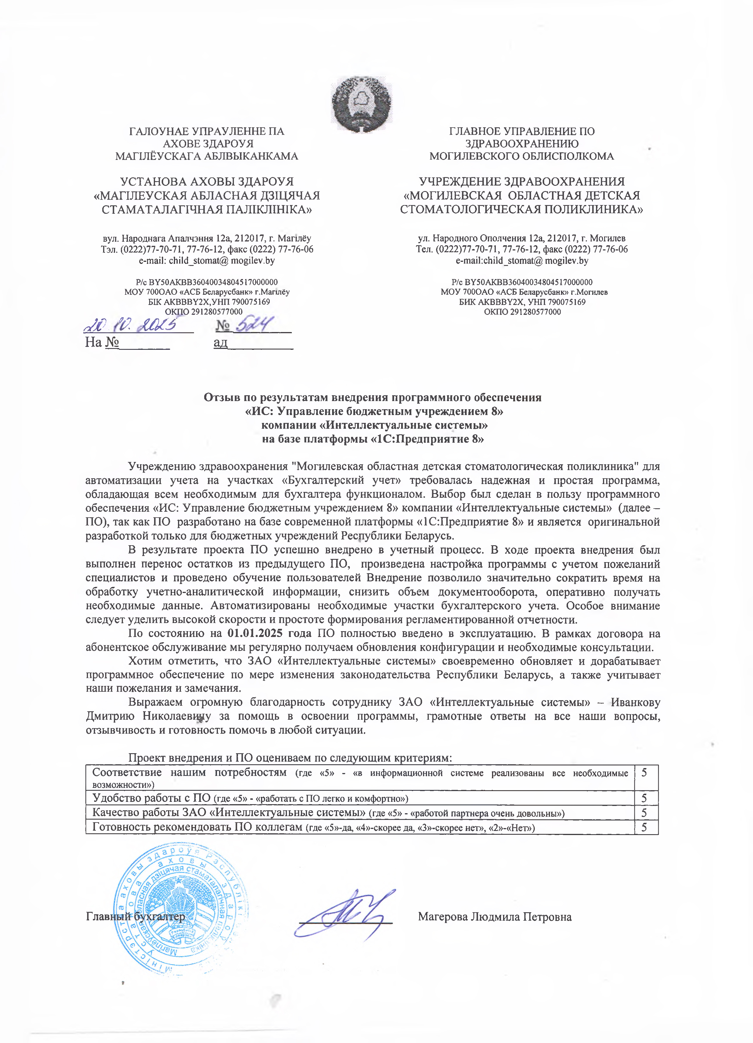 Учреждению здравоохранения "Могилевская областная детская стоматологическая поликлиника" для автоматизации учета на участках «Бухгалтерский учет» требовалась надежная и простая программа, обладающая всем необходимым для бухгалтера функционалом. Выбор был сделан в пользу программного обеспечения «ИС: Управление бюджетным учреждением 8» компании «Интеллектуальные системы» (далее – ПО), так как ПО разработано на базе современной платформы «1С:Предприятие 8» и является оригинальной разработкой только для бюджетных учреждений Республики Беларусь.