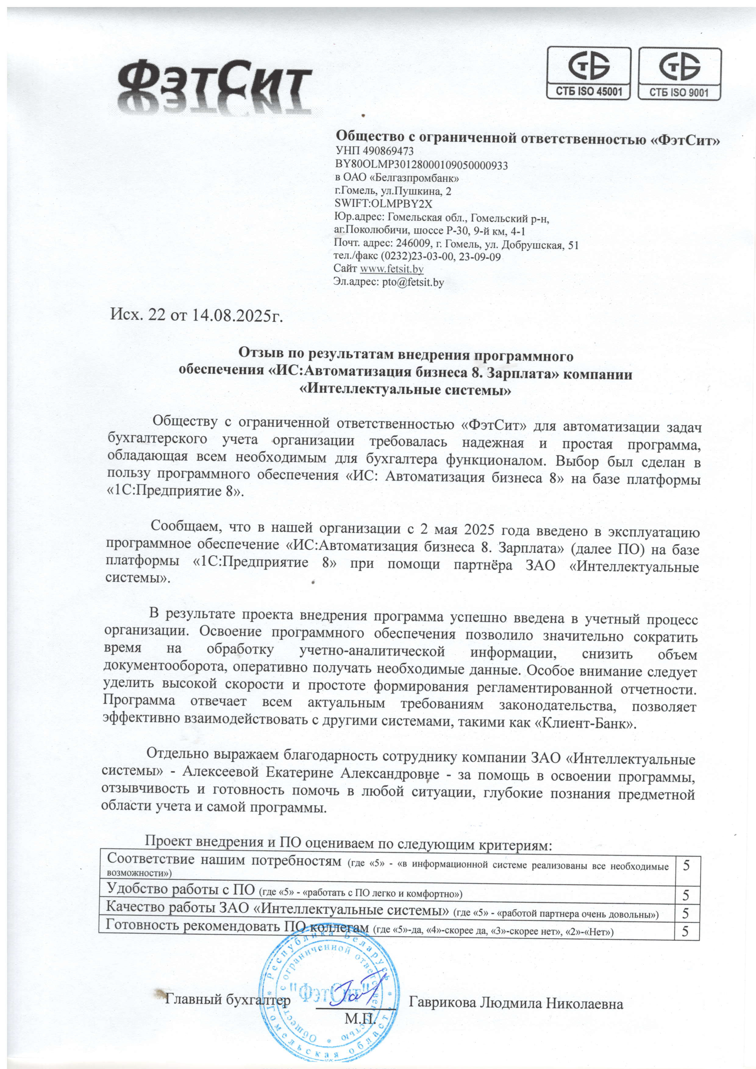 Сообщаем, что в нашей организации с 2 мая 2025 года введено в эксплуатацию программное обеспечение «ИС:Автоматизация бизнеса 8. Зарплата» (далее ПО) на базе платформы «1С:Предприятие 8» при помощи партнёра ЗАО «Интеллектуальные системы».