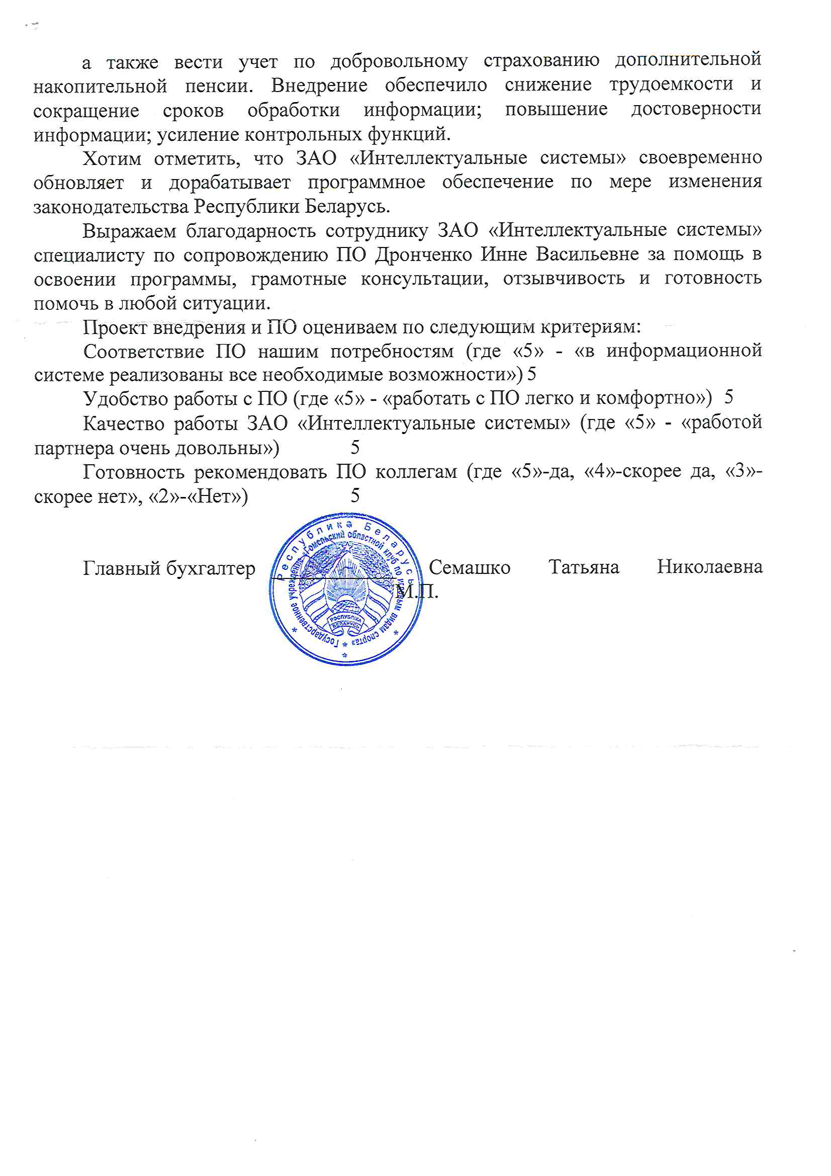 Хотим отметить, что ЗАО «Интеллектуальные системы» своевременно обновляет и дорабатывает программное обеспечение по мере изменения законодательства Республики Беларусь.