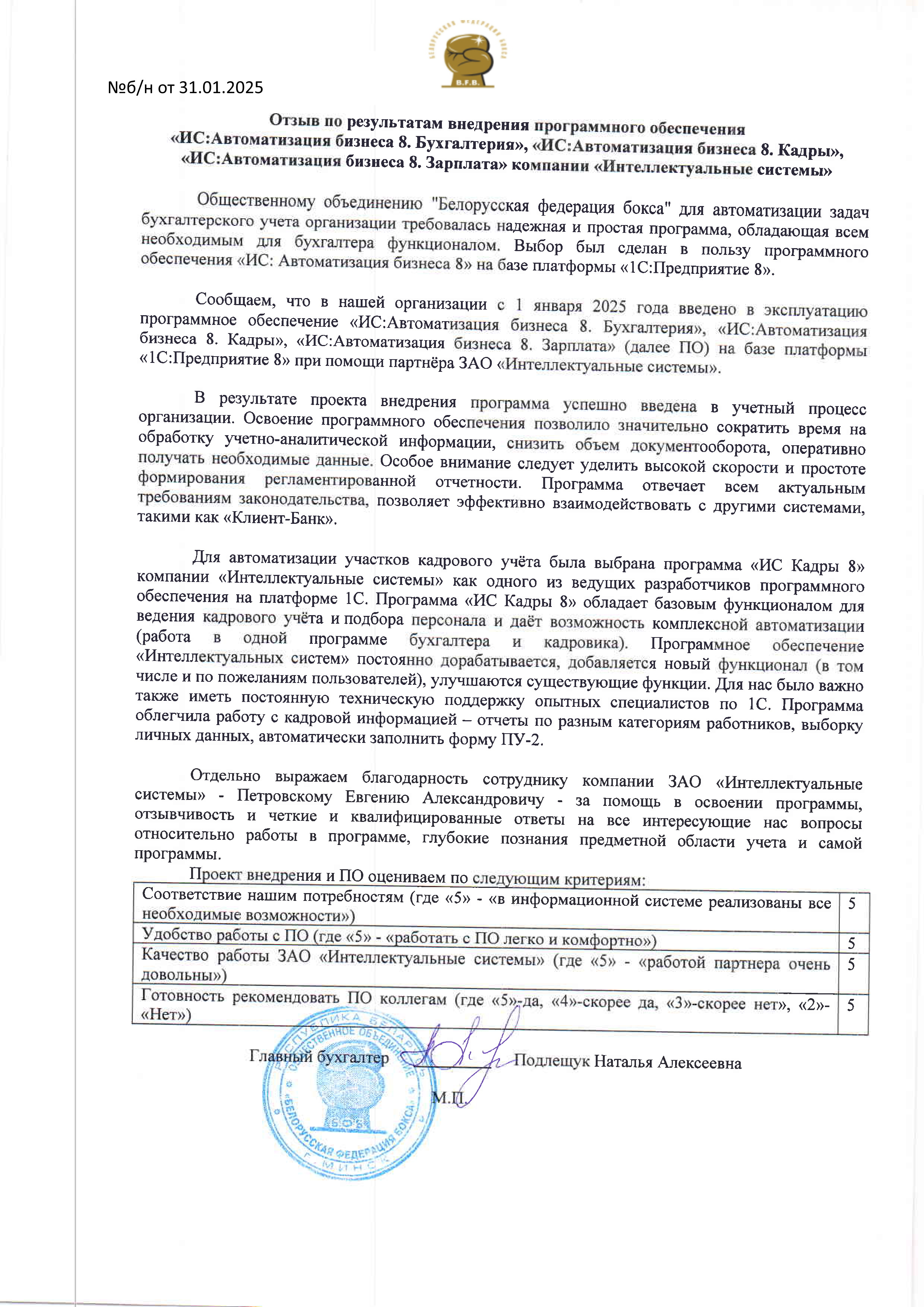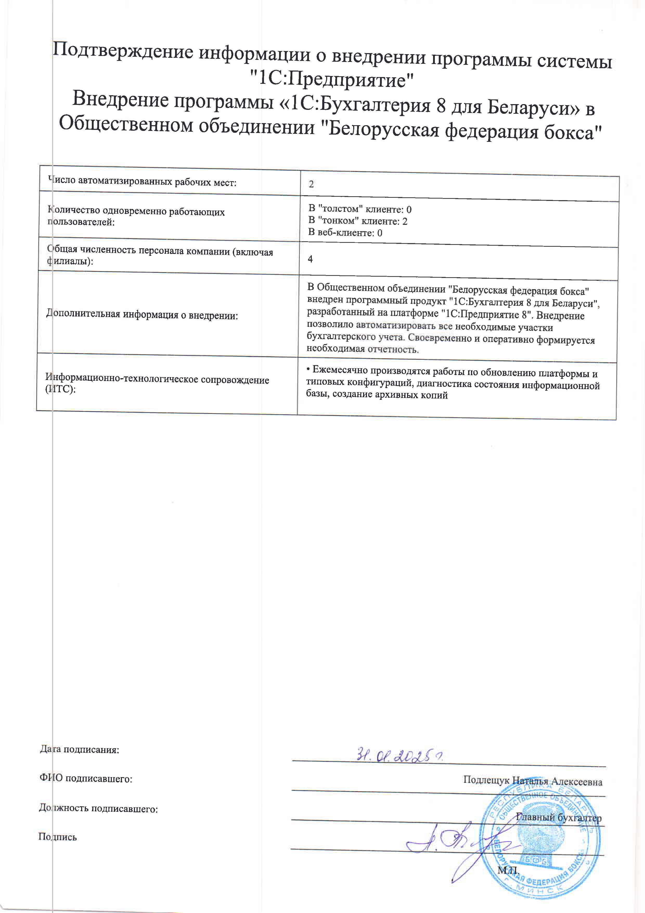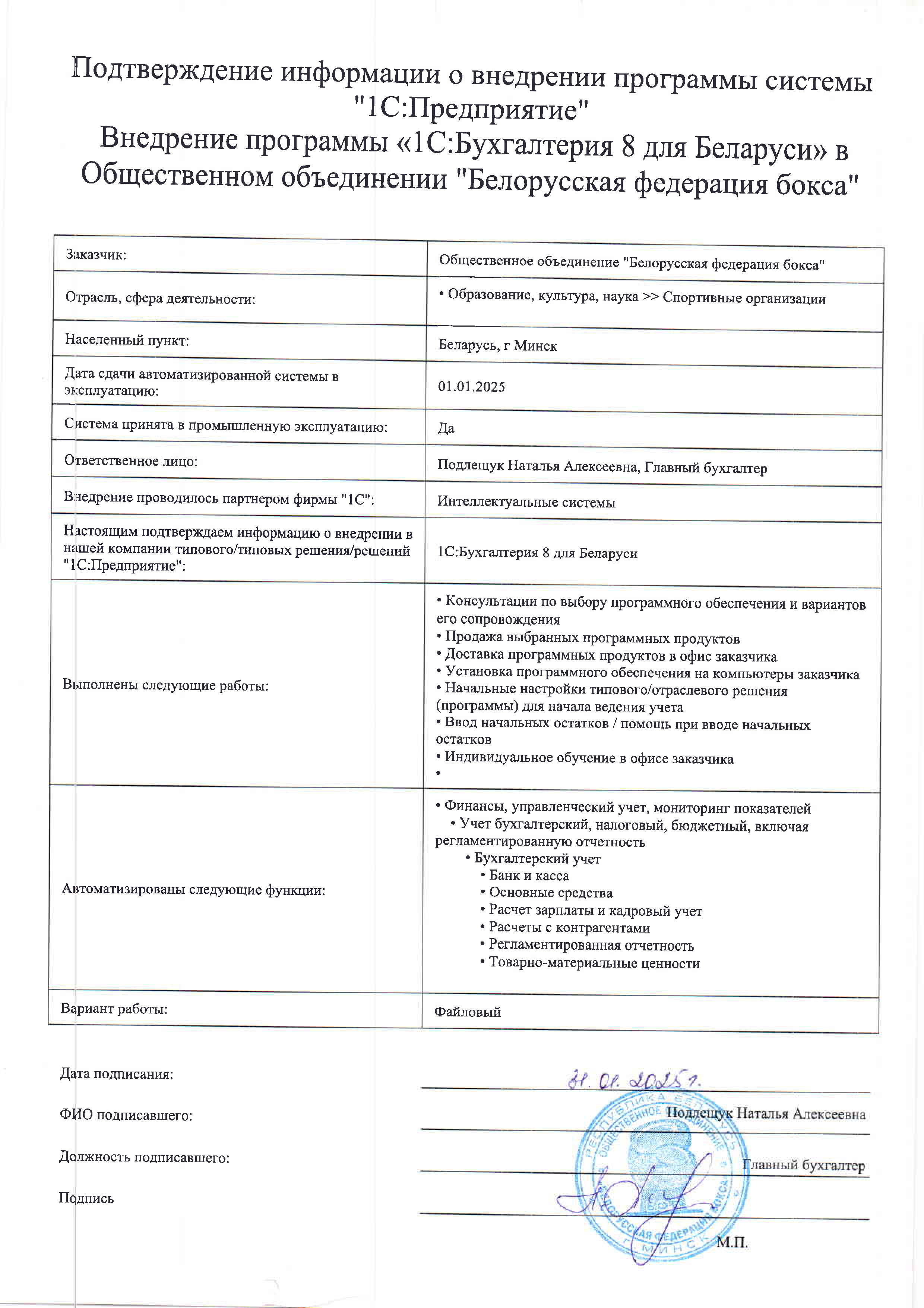 Внедрение 1С в Общественном объединении "Белорусская федерация бокса"